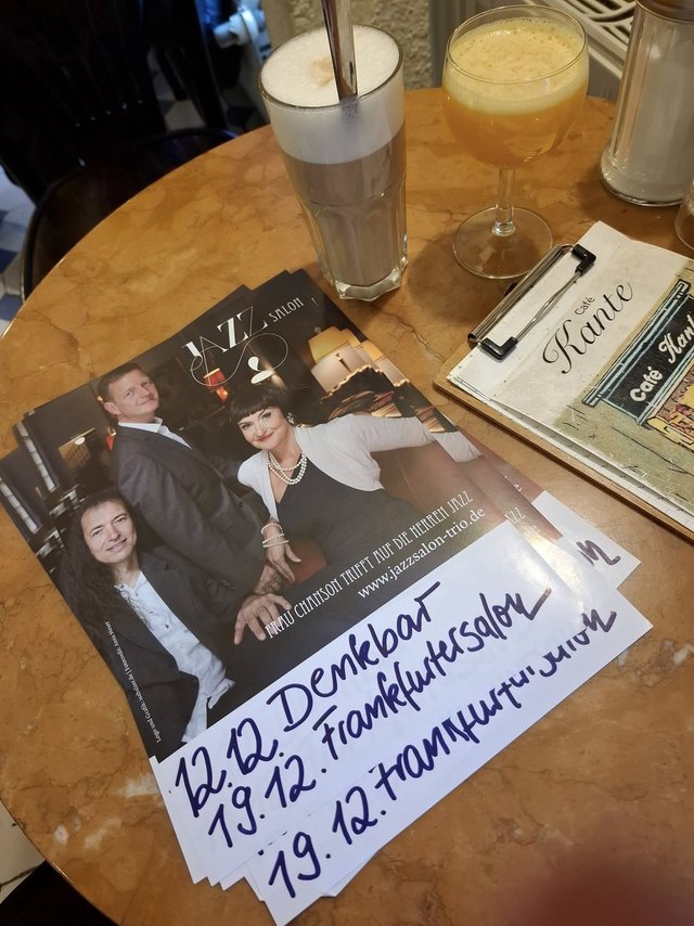 Freitag, 19. Dezember: Jazzsalon![]() (Uwe) Ev Machui und der Jazzsalon spielen zum Jahresende ein Programm mit Hilde Knef Liedern - unter anderem welche, die von Cole Porter stammen und von ihr in den 60ern auf Deutsch gesungen wurden -einigen französischen Chansons, Jazzstandards und eigenen Songs. 19. Dez: Frankfurtersalon, F., Braubachstr. / 19:30 Uhr (keine Reservierung möglich) |