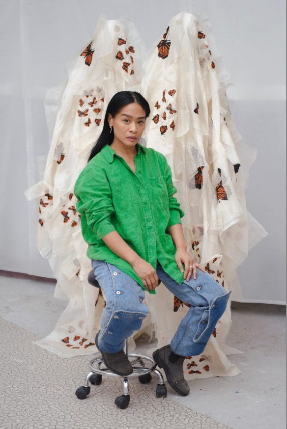 Noch bis Sonntag, 04. Januar: Ausstellung Stephanie Comilang in der Schirn![]() (Petra) Die Ausstellung verbindet den für den Inselstaat der Philippinen prägenden Ozean und die Seefahrt mit Fragen zur Indigenen Kultur und zum kulturellen Austausch. Comilang befasst sich mit migratorischen Erfahrungen und erkundet Ökonomie, Arbeit und Technologie und postkoloniale Verflechtungen in einem globalen Zusammenhang. Ihre aufwändig produzierten und raumgreifend installierten Filme nennt sie selbst „science fiction documentaries“. Mensch und Natur, Heimat, Arbeitsmigration und Diaspora sowie der Umgang mit Ressourcen sind wiederkehrende Anliegen ihrer vielschichtigen Erzählungen über Zukunft und Vergangenheit. Tief dringt Comilang in den jeweiligen Kontext ein und kombiniert Recherchen und historische Fakten mit fiktionalen Elementen und persönlichen Erzählungen unterschiedlicher Protagonist*innen, wobei immer wieder Fragen der Zugehörigkeit und die Suche nach der (eigenen) Identität aufscheinen. So widmet sich „Search for Life I“ dem Lebensalltag eines philippinischen Matrosen und Künstlers auf einem Frachtschiff sowie einem Floristen, der dem Leben auf See entkommen ist, und setzt ihre Biografien in Verbindung mit einer Erzählung über den Monarchfalter, einem Wanderfalter, der enorme Entfernungen überwindet. Der zweite Teil des filmischen Diptychons verwebt Geschichten zum Wandel der traditionsreichen Perlenfischerei in der Begegnung mit Indigenen Tauchern, mit der einen Zuchtbetrieb leitenden „Mother of Pearls“ sowie mit einer emiratisch-philippinischen Migrantin der zweiten Generation, die als Tänzerin einer K-Pop-Gruppe zwischen den Kulturen steht. Comilang konfrontiert Märchenhaftes mit harten Realitäten. Fiktion und Authentizität vereint die Künstlerin technisch durch eindrucksvolle, mit Drohne und Smartphone gefilmte High-End-Produktionen, die sie mit Lo-Fi-Aufnahmen wie Vlog-Vignetten oder Livestreams verbindet. Foto: Portrait Stephanie Comilang© Trevor Good, Courtesy of the Artist and ChertLüdde, Berlin; Daniel Faria Gallery, Toronto, und Fundación TBA21, Madrid Stephanie Comilang – Soloausstellung, Ort: Schirn Bockenheim, Adresse: Gabriel-Riesser-Weg 3, Öffnungszeiten: dienstags, mittwochs, freitags - sonntags 10 - 19 Uhr, donnerstags 10 - 22 Uhr, Eintritt: 8 (6) Euro, barrierefrei |